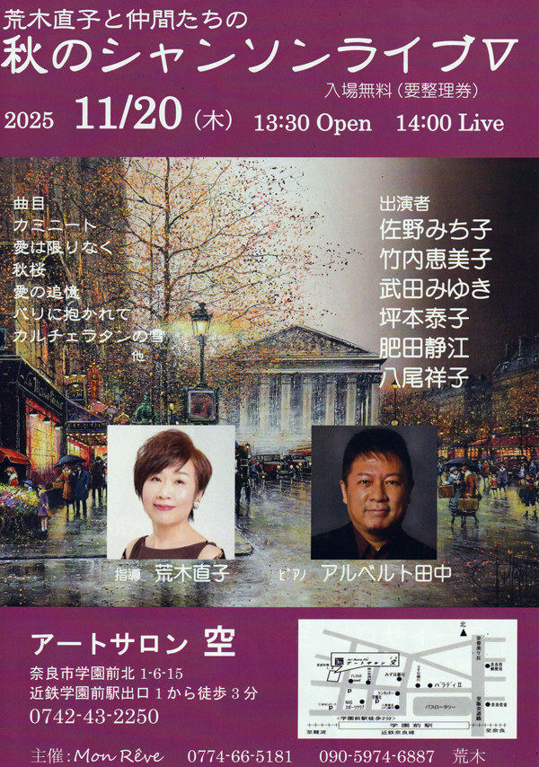 見学・体験ご希望の方はアートサロン空(0742-43-2250)までご連絡ください。