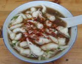 昨日からの雨はなんとか止み、翌日は曇天。鳳凰の古城をぶらぶらと散策していたのだが、ここは観光地。つまり、お土産屋さんがたっくさんあるってことだ。 そしてオンナ2人の旅。当然のことながら、買物モードに突入してしまった。 銀のアクセサリー、少数民族の刺繍が美しいかばん、麻の服など買いまくりだ。今まで買物をしたといえば、三江でのトン族民族衣装&綿ショルダーバック&刺繍布、肇興での刺繍布、西江での銀のアクセサリーぐらい。かなり抑えてきた。そんな状況だったので、火がつくのも容易だったのかもしれない。 帰国後も使ってるものが多いので、かなりお買い得だった思う。 さて、鳳凰でもこの地方の特色ある食事をした。