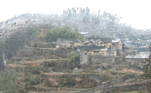 朝寝坊が原因で公共のバスに乗り遅れてしまったのだが、実はこれは正解だったのかもしれない。小黄から従江までのバスは恐らく1日に1本あるだけで、朝、従江から小黄へ向かうバスが折り返すのだろう。 ということは、もし朝7時のバスに乗っていたら、ゆっくりと小黄を散策することはできなかったかもしれない。小黄には客を乗せるために待ちかまえている三輪車モーター車の姿はなかった。となると、小黄の民家にホームスティということになるのだろうが、あの寒さにはきっと耐えられなかっただろう。もしも小黄に泊まるのであれば、寝袋は必須だ。 |