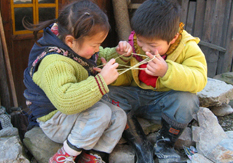 民家の中を歩いて行くと、あや取りとしている女の子がいた。私が子供の頃にやったのと同じパターンだ。とても懐かしかったし、中国の子供達も同じ遊びをすることに親近感を抱いた。