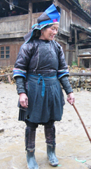 旅館に到着後、間もなくして小雨が降り出したのでどこにも観光には行かなかった。時間はたっぷりあるのだ。近くの小料理屋でしこたま夕飯を食べて、旅館の居間で炭火に当たりながら、旅館の家族や旅行者と21:00までおしゃべり。 一人で旅をしている中国人(♂)、みんなが呆れるほどめちゃくちゃしゃべる。しかもかなり早口だ。しかも今日肇興に着いたばかりなのに明日はもうここを発つらしい。ちゃんと観光したのかしら…? 「明日は公共のバスも止まってしまうからやめとけ!」とみんなで言ったけど、彼の決意は固かった。実は彼の仕事はガイドで(どうりでおしゃべり)、いろんな所を旅したいらしい。彼のおかげでオススメの場所などの情報が集まったので、今後のプランを立てる上でも役立った。そして彼は翌日、個人的に頼んだ車で従江へと出発した。バスだったら20元のところを200元もかけて! 翌日は10時に起きて、昨夜も行った小料理屋で朝食兼昼食を食べた後、古い鼓楼があるという紀堂に歩いて行くことにした。旅館の御主人が歩いて40分ぐらいで行けると教えてくれたのだ。地図を見ながら、そして人に聞きながら、山道を歩いていく。 当然舗装なんてされていない道で、昨夜の雨の影響もあり、かなりドロドロになっている箇所もあった。靴が泥にくっついてうまく歩けなかったり、滑ったりと本当に大変だ。苦労している私達の目に映るのは、そんな道をものともせずにさっさと歩く地元の人達。足取りの軽いおばあちゃんは、泥にはまっているS嬢を助けてくれた。 おばあちゃん!かなりの達人ですねぇ!かっこいい〜! 1時間強もかかって、やっと紀堂の入り口までたどり着いた。肇興に比べて標高の高い場所にあるので、登り坂のオンパレードだ。こうなるといつもは有り難いロングのダウンが邪魔になる。ファスナーを開けて少し冷たい空気に触れ、ほてった体を落ち着かせる。こんな時期にまさか汗をかくなんて、重力に逆らうってすごいエネルギーを使うのね…。