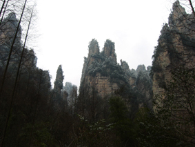 張家界は中国湖南省西北部にある。奇岩奇峰を要する風景は世界自然遺産に登録されると共に、中国重点風景名勝及び国家4A級風景区にも指定されている。張家界の中心は武陵源風景名勝区で、張家界国家森林公園、天子山自然保護区、索渓峪自然保護区、そして楊家界遊覧区から構成されている。せっかく湖南まで来ているのだから、張家界を見ないのはもったいない。 王村を出発した後、張家界には夜8時前到着したのだが、バスを降りるや否やホテルの客引きやガイド達に囲まれて大変だった。無視して繁華街の方へ歩いていくも、1人のガイドはしぶとく付いてくる。結局根負けしてそのガイドが薦めるホテルに決めたのだが、値段の割に設備はよろしくない。明朝は退房(チェックアウト)しようと決める。 翌日は8時にホテルのロビーで郭さんと待ち合わせをしていた。彼女は長春の友人M姐が張家界で日本語教師をしていた時の教え子で、今回M姐からの紹介で張家界のガイドをしてくれることになっていた。ガイドの資格も持っているらしい。 郭さんはすぐに分かった。とてもおしゃれな女の子だったのでびっくりした。こっちは汚い格好をしているっていうのに…。美を忘れちゃいかんなぁ…。 彼女の話だと、張家界見学をするには旅行団(ツアー会社)に申し込むとよいらしい。そうすれば彼女はガイド扱いとなり、彼女自身の入場料などはかからなくなるらしい。手際よく下調べもしておいてくれて、彼女お薦めの旅行団に申し込む(一泊込みで480元)。