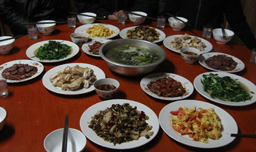 今夜のホテルは運転手が手配してくれた「東玉楼大酒店」。2人で80元と安いのに、めちゃくちゃきれいなホテルだった。信じられない〜。夕飯も地元のおいしいお店を紹介してもらい、お腹も満たされてかなり満足。さらに足のマッサージまで紹介してもらった。2日間酷使していたので棒のようになっていた足。マッサージは本当に気持ちよく、極楽だった。お値段は1人75元。 そして、私達2人がそれぞれの任地へ帰るための列車のチケットも手配してくれるという心遣いには感謝感謝だ。本当は長春まで一気に飛行機で帰ろうかと思っていたのだが、さすがに21時発、23時半着の飛行機には乗る気になれなかった。 旅行最終日。9時前にホテルを出て、地元の物産品を求めて超市(スーパー)へお買物に出かける。いろいろと物色中に、郭さんから連絡が入った。S嬢の列車の時刻を間違えていたらしく10時発だということだ。急がないと間に合わないよ。ということで、S嬢は急いで駅まで向かうことになり、ここでお別れとなった。 長々と一緒に旅してくれてありがとう。行き当たりばったり的なところがとっても楽しくて、よい旅になったよ〜。非常感謝!! その後、私はゆっくりと張家界の特産物を見てまわり、干芋、干楊梅、干キウイ(この辺りは干したものが特産なのだ)、そして生姜飴と葛根粉を購入。大満足。 郭さんとの待ち合わせは駅で11時。そこで彼女と落ち合うと、なんとお父さんがお手製のご飯を振舞ってくれるという話だった。これは予想外。列車出発までの時間が短くて気になったけど、家は駅のすぐそばだということなのでお邪魔させてもらうことにした。