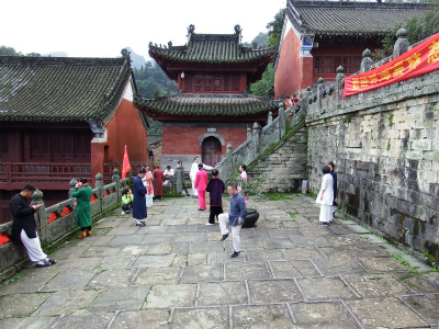 | 武当山は中国道教における聖地、最高峰と呼ばれる広大な地域と道教ゆかりの古建築群は世界遺産にも登録され内外の関心を呼んでいます。 武当山は、道教精神の世界、武術精神の世界、そしてそれらの精神世界 を支えてきたものものが存在し多くの来訪者を魅了しています。 武当山では雄大な山の空気と風の中で、道士の方に直々に太極拳の指導をして頂き、大切な思い出となりました。 9月には、武当山太極拳世界大会があり世界中、特にヨーロッパから多くの人々が集まり大混雑だったとの事です。 上海では、上海武術学院の太極拳教室を訪問、一緒に太極拳で汗を流し交流しました。 |