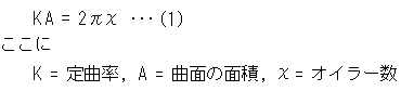 (カイ)から、曲率Kがすぐに出ます。 面積Aと曲率Kの積KAを全曲率といいます。 (オイラー数はオイラー標数と同じことです。)