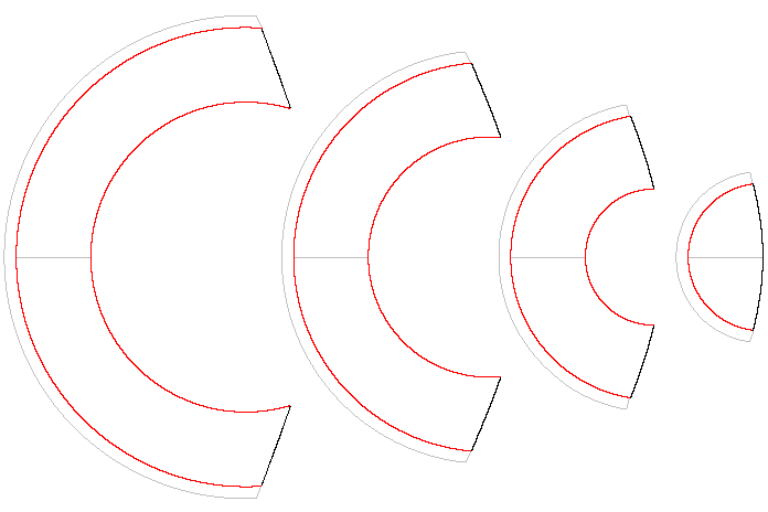ポアンカレ円板から作る擬球のアニュラスです。 本文Fig.19の完成品を見て工作してください。 Fig.16のは、工作しやすいようにと少し大きくしています。 糊しろの裂き目は描いてありませんが、適当にハサミを入れてください。