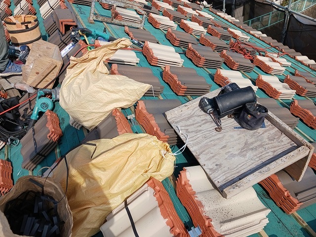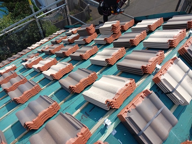 <屋根材> 三州産 防災波型陶器瓦 2色混ぜ葺き 令和7年10月現在 工事中 |