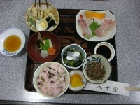 門前の宿では赤飯で祝ってくれた。泊り客8人みんな笑顔で浮かれている、宿の女将さんも加わって賑やかな食事。夜は満足感に浸ってぐっすりと寝た。