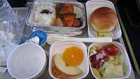 機内食は日本食に近く美味しかった。キャビンアテンダントが中国語で言ってくる。