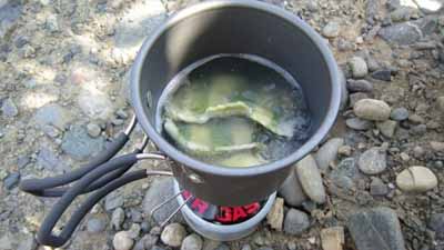 ホテルで調理。これもなかなか芯がなくならない。気圧の所為ですか?
