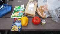 "Trans CANADA"の途中"Golden"のスーパーはなかなかいい。スイスチーズと計り売りナッツ、でかいパプリカはジューシー。
