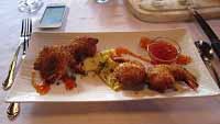 ホテルのレストランでえびフライ。普通に旨い。ウエィトレスが異常にハイテンション。