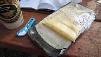 一口サイズのチーズはなかなか売っていない。旨い。クラッカーもかなり旨い。次ぎの町では売っていなかった。残念。