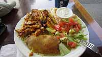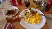 通りがかりのレストランで旨そうなものを食っているので入った。確かに旨いがジャガイモ、スクランブル、食パンだけ。