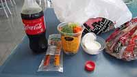 コーラも別売。お釣を財布にしまっているとき、カウンターの隙間に小銭を落とした。
