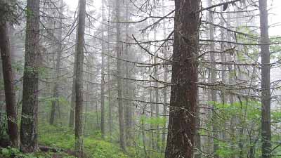 翌日は小雨と曇り。休養日にしてホテルお勧めのハイクに行って見たが霧で山は見えなかった。
