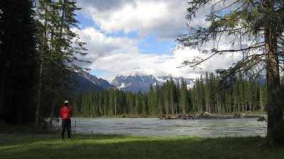 荷物はホテルに預けて、天気の良いうちに"Kinny Lake"までハイキング。