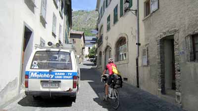 快晴、今日も快晴。足の痛みもかなり軽くなった。父親からもらった ムコスタ錠100mgが効いたかもしれない。 改めて親のありがたみがわかった。人の薬をもらうと言うのもどうかと思うが。 最近のチューブはバルブ部分がネジで分解できる。緩んで2日ほどで圧が下がった。 前輪は閉めなおせば問題はなかったが 後輪は最後まで徐々に抜け戻ってからもなおらなっかた。 ![]() 一昨日押した道を下る。景色は新鮮に見える。 ![]() 牧草の倉庫 ダクトとブロアは乾燥用 ![]() 牽引車は水色。小汚くないのが不思議。ところどころ、普通に土木工事はやっていて 現場はやはり汚いがドロドロではない。 ![]() Zermatt→Visp→Leukと国道を行かなければならない。 幹線道路である。ここでスイスの人の良さがわかった。 ポプラ並木も時々ある。ところどころ追い越し用に3車線のところがある。 ![]() 葡萄畑のLeukに着いた。今日の予定はLeukerbadで温泉だ。 Leukはただ通り道のつもりが、かなりお気に入りとなった。 ![]() 飾り気のない教会に十字架に吊るされたキリスト。 ![]() 教会の駐車場で昼食。 ![]() 教会のドアの彫刻。だれも盗まない。動物もいない。 日差しは強いが涼しい。蚊がいない。 ![]() 教会?城?。家屋の割には葡萄畑が少ない。 これだけで全員が食べていけるとは思えない。別荘地なのか?疑問は増える。 ![]() おお電気屋だ。 Meichtry RADIO TV LEIUK STADT 適当に読んでいたらおっちゃんが声をかけてきた。 「日本からか?」「ヤー」。こうゆう場合「Guten Tag」でいいか?「good」 別れる時は「Auf Wiedersehen」が「good」だそうだ。ドイツ語のお勉強。 こんな田舎で私の英語が通じるのもスイスか。 写真は撮らせてくれなかった。 ![]() やはり窓が綺麗。 ![]() 民家 ![]() 家屋の基礎部分。さすがこの家には誰も住んでいない。 ![]() 実際、この村の名前はわからないし聞いても覚えないだろう。 Loecheのeにスラッシュが付いているのでフランス語ポイ。 ずーと下のロッテン川沿いに最寄の駅、Leukがある。遠くにロッテン川が見える。 レマン湖まで流れているはずだ。 ![]() 最近のチューブはバルブ部分がネジで分解できる。 ここ緩んで2日ほどで圧が下がっていた。気が付かない。 前輪は閉めなおせば問題はなかったが後輪は最後まで徐々に抜けていった。 |