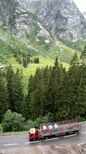 雨のGrimselPass 2165m きつい!![]() Grindelwaldの優雅な生活から一転、地獄の峠越えが始まった。朝から雨の中 を一旦Interlakenまで下る。Thunersee トゥーン湖畔を東へ、計画時曖昧だ った道はちゃんと自転車道として整備されていた。しかし、ハイウェイとは違っ てアップダウンがキツイ。 これからGrimselを攻めるのにここで体力を消耗したくない。 トゥーン湖畔のホテル 雨はやんだ、このまま持ってくれ。 ![]() アップダウンがキツイ あえぐ先輩。 ![]() やっとトゥーン湖の端まで来た。Meiringenマイリンゲンあたり。 メイリンゲンとは言わない。 ![]() この先店があるかどうか?スタンドで食購。 終着駅innertkirchenのプラットホームで雨を避けて昼食。 ![]() もうすぐ大雨の予感。鉄路の選択肢はない。 ![]() 登ればわかる11% ![]() 登り始め、まだ余裕。 ![]() 旧道があった。怖いトンネルを通らなくてもいい。 ![]() つずら折れの道は思ったより楽ではあるが長い。 ![]() 大きなトラックも通るがマナーが良く、あまり怖くない。 ![]() 旧道 昔の人は苦労したんだなと思う。 ![]() Raterichsboden see ジーだけはわかる。どうでもいい。景色も天気も最悪。 ![]() まだ終わらない。雨がきつくなって来た。峠の看板を見落とした。 どこが峠かわからない。先輩が来ない。 ![]() 峠の写真は強雨の為断念。レストランでホットなコーヒーを飲むも寒さ変わらず。 どこかのチームがこの峠の練習をしていた。下りはコーチの車らしい。 一緒にコーヒーを飲んだがレベルが違う。 雨の下りは怖い。Furka峠との分岐Gletshを過ぎても下りは続く。ホテルが遠い。 今回のツアーではSimplonに次ぐ峠だ。ここまで走り込んでいるので登りはきつく なかったが、雨の下りは閉口する。どのあたりを走っているのか全然不明、GPS 頼り。 翌日、Gletshから見上げると半端ではなかった。 くたくたになって、ホテルの近くにたどり着いたがホテルが見つからない。 GPSが間違ってたらもう走れない。 綺麗なホテルだ。ドイツから移り住んでいる家族が経営している。若い息子が有望。 ディナーもいい。インターネットは遅いが日本語のパソコンを貸してくれやっと家に メールができた。 ちなみに、ドイツ語のパソコンでYahooJapanを見ても何がなんだかわからない。 携帯パケ放題も料金が心配 このとき、Zaurusと携帯の兼用充電器が破損いていた。軽量化のやり過ぎ、容量不足 は間違いない。 ついでに、雨でカメラ充電器も破損。Montbellのフロントバッグビチャビチャ 自作のカメラケースもビチャビチャ。濡れたもの食堂の暖炉で乾燥させなさいって。 くさいで。 トゥーン湖の自転車道で道を聞いた女性は日本人でスイスに嫁いで、家族や自身の 両親共と住んでいるようだ。世界旅行中の若い男の子が怪我をし、以前この家に厄 介になっていた者に聞いて助けを求めてきたそうである。数ヶ月逗留したそうだ。 だから、我々を見ても驚かない。 「この道はメイリンゲンにつながっていますか?」Meiringen 正しくは「マイリンゲン」と訂正された。 |