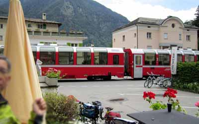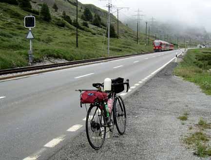 Bernina LineとPasso del Bernina(2330m)![]() 朝から冷たい雨。ここは標高1775m。峠まで500m程上げればいい。 「寒いのは今だけ、雨もやむ」の先輩の声に励まされペダルをこぐ。最後の峠だ。 逆から登るのは止めた方がいいと思う。 目的地Tiranoは標高429m。なんと1900mの下り。 この峠も広い。 ![]() かっこいい ![]() 頻繁に通るので珍しくなくなった。 ![]() 氷河が見えるはず。 ![]() この景色を電車から見るより自転車の方がいいと思う。ゆっくり見られる。 ![]() ゆっくり見ているのは我々年寄りサイクリストだけだった。 ![]() ![]() 一日に2〜3回登ってくるとか何とか、言ってるおっちゃんと撮影。 ![]() 道が家を突き抜けているあたり1100mで暑くなる。 ![]() このトラック通れるのか? ![]() ![]() S.AntonioでBernina Lineと道路が合流する。 何とかしろと思うがしないのがスイス。 ![]() 知合ったスイス在住の旅行コーディネーターと一緒にレストランへ行く。 道路にはBernina Lineが路面電車となって走っている。 ![]() Brusioのループ橋は工事中。橋脚も新しくなって趣がない。 ![]() イタリア国境。戻ってきた。準備から考えると長いツアーだった。 ![]() Tirano旧市街。スイスとどこか雰囲気が違う。見る人の気持ちの問題か。 ![]() 時計が止まっている。 ![]() ちょっと… ![]() 朝、散歩に出かけた。普通の街だ。 ![]() ボンジョルノがボン↑ジョル↑ノとセクションごとに揚がるテンションの 高いおじさん。その後、会う人みなボン→ジョル→ノとフラットな発音。 駅は草がぼうぼう。 ![]() 新しい自転車置き場だ。 ![]() ループ橋にはかなりガッカリした。工事中でなくても失望するだろう。観光案内 の写真はうまく撮っている。S.Mortzの走り始めは計画段階でも道がよくわからず 適当にポイントを設定していた。やはり、迷った。雨、寒さ、地道が重なり、かな り不愉快。できるだけ調べておくべきだった。Tiranoはイタリアに戻ったと感じる。 路上物売りがいた。誰がこんんもの買うかと思っていたら、買う人がいる。 「さくら」か?最近日本では見かけない「さくら」ずーと見ていたら電車に乗った のでそうでもなさそうだ?? 横断歩道に立つと車が必ず止まってくれるところはスイスと同じ。 トイレがない。聞くとBarに行けと言う。 トイレだけで入るのは気が引けるが辛抱たまらず入った。 おっちゃん、笑顔で挨拶、No Problem だって。いずれにしても皆、親切だ。 |