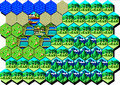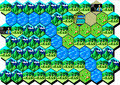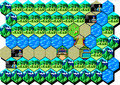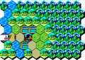 スクエア画面でグローバル移動を行う。 移動は基本的にこの画面を使用する。 というのも、ちょっとした川や小山は乗り越えてグイグイ進む事ができるからである。 要人は海は乗り越えられず、港を使用する必要がある。 部隊は海を乗り越える事ができるが、海岸線のスクエアでヘクスに戻ると、海の上に部隊が配置されて身動きが取れなくなる。 こうなった場合、一旦スクエアに戻り、再度移動すると良い。