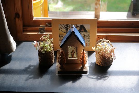 |                                  2025.6.23 新しい飾り棚ができました。 前回奈良へ来た時に作品を飾る棚ができましたので、今回開田高原の家から作品を 持ってきました。以前に作ったものばかりですが、作っていた頃の日々を懐かしく思い出しています。私の60歳代、70歳代と80歳前半の作品です。  |