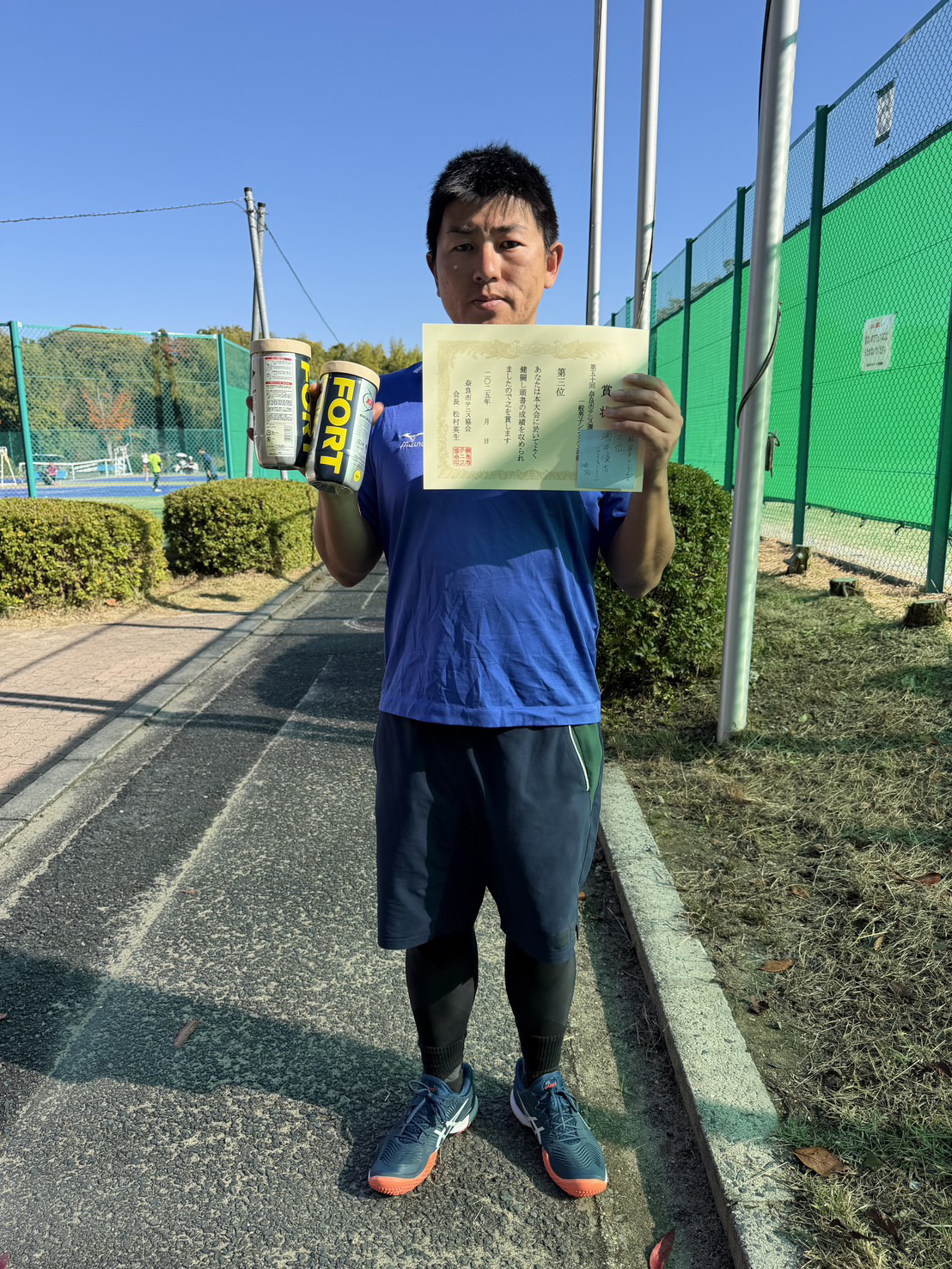 第76回奈良県民スポーツ大会テニスの部で奈良市代表が優勝し、3連覇達成致しました。