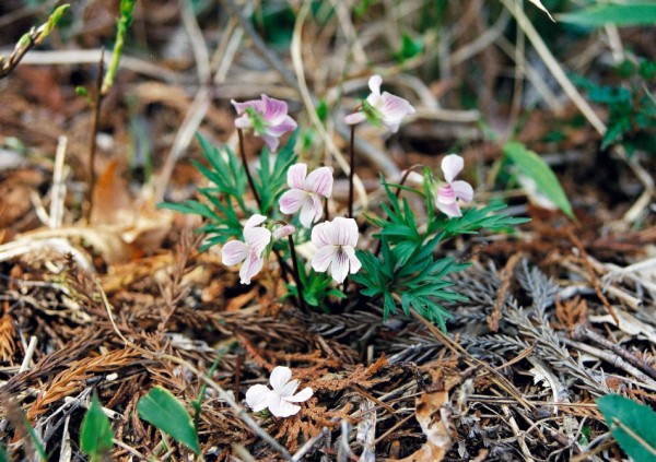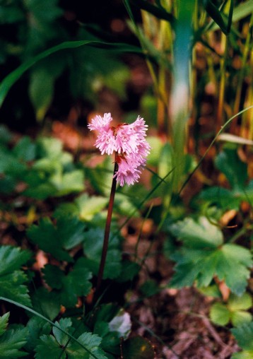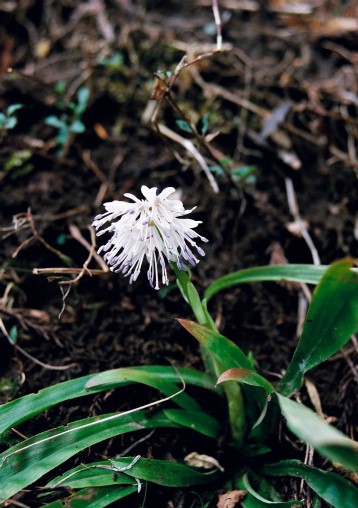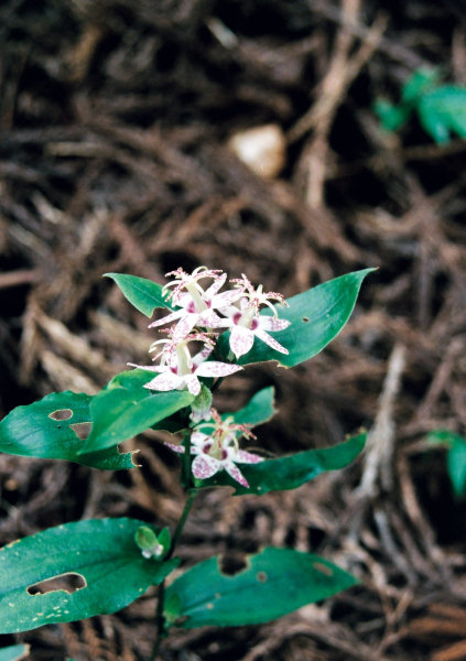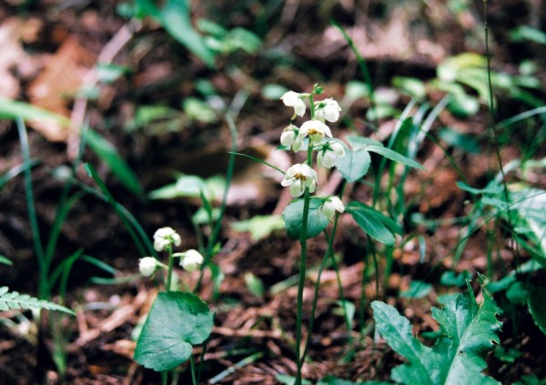 山地の木陰に生える多年草で、春に林の中のなどの薄暗い所で花を