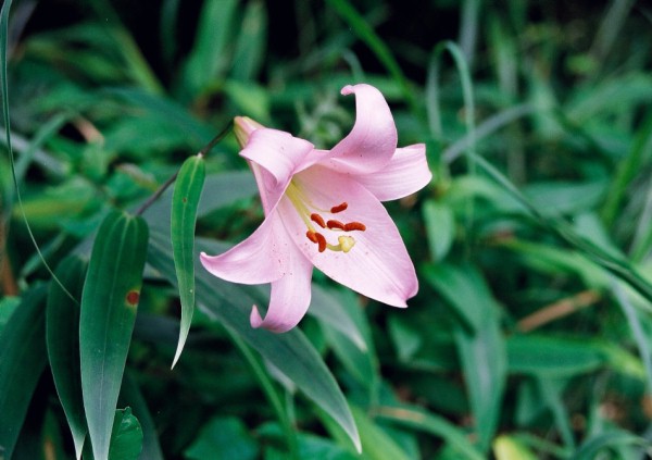 山地に生育する日本特産のユリです、花期は6〜8月頃。