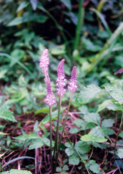 山野の湿った所や渓流沿いに生える多年草、花期は4〜6月頃。