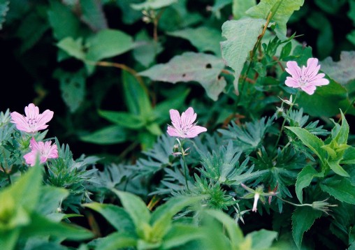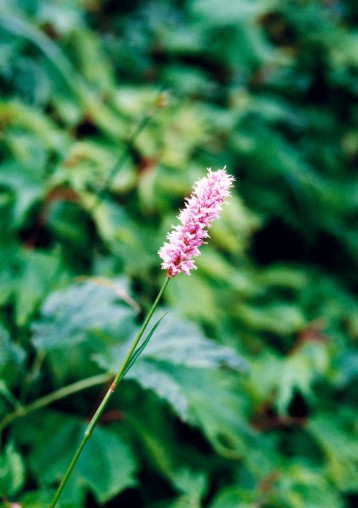 深山や高山の草原に咲く多年草で、径2.5〜3cmの淡紫紅色の