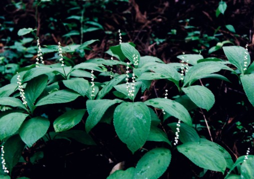 林の中の薄暗い所に生え黄緑色の花が咲く多年草。