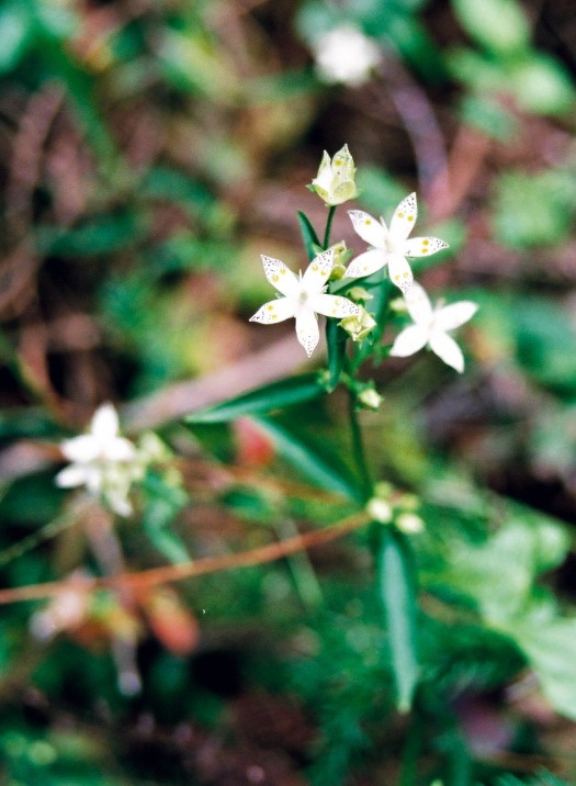 落葉樹林内や草原等に咲く多年草で、柄のある白い小さな花を多数付ける