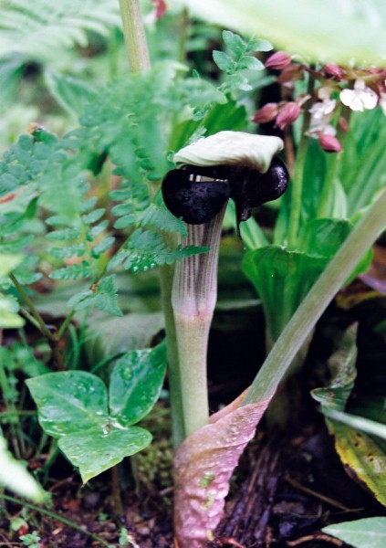 海に近い林に咲く多年草でテンナンショウ属です。