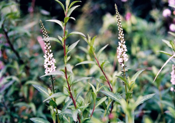オカトラノオに似ているが、花穂は立ち細い花です。