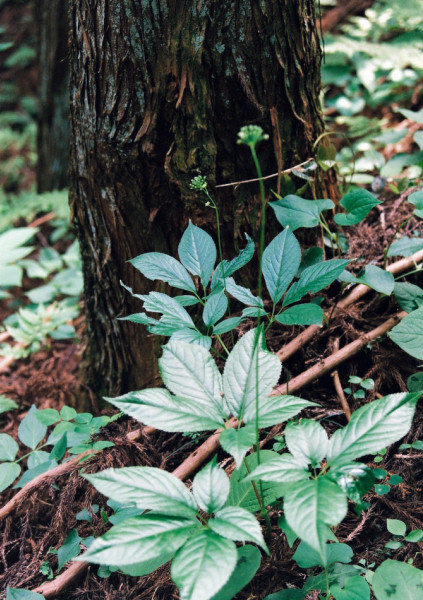 山地の林下に咲く多年草。