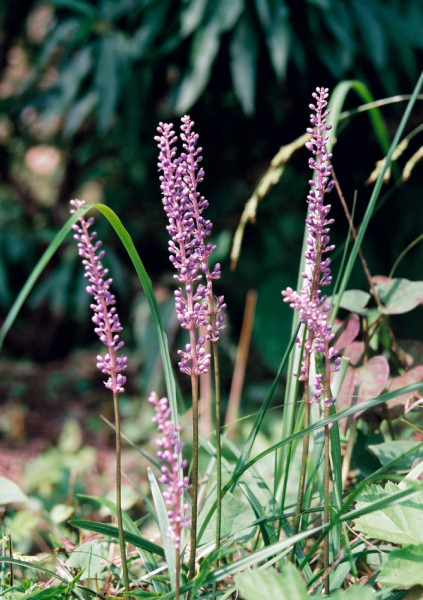 山地の谷沿いや湿気の多い森林中に咲く小形の多年草。