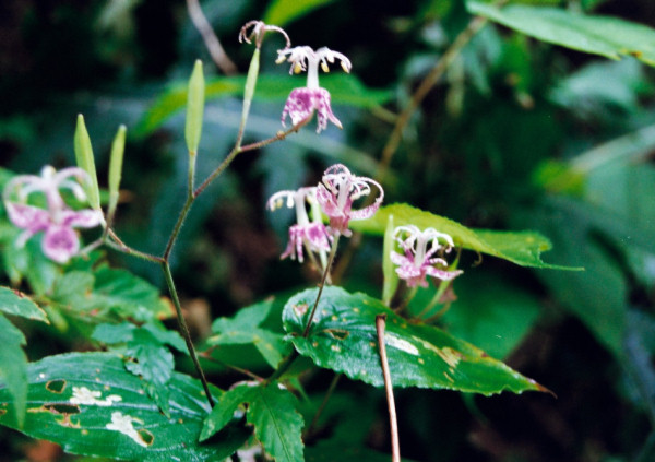 山地の林下に咲く多年草で、よく似たヤマジノホトトギスとの違いは、