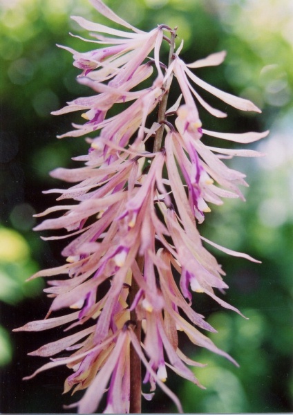 40cm程の花茎に淡紫褐色の花を20個ほど付ける。