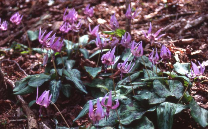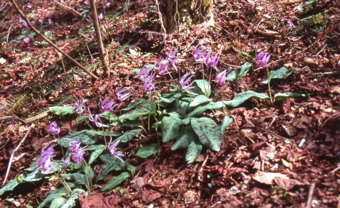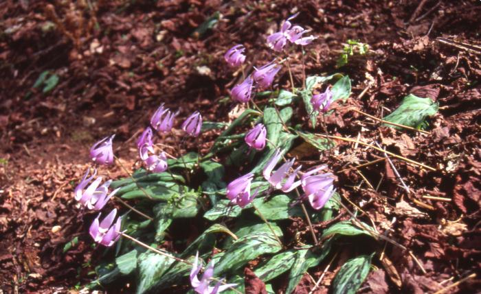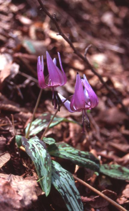 写真のカタクリはH16年の春に 奈良県御所市葛城山で撮った写真です。 乱掘で花が段々減って来ている様です、葛城山では管理が好いのが、 凄く立派な群生地がありました。 カタクリは種子からだと、8年間かかってやっと花が咲く そうです、色も形も良くて大事に育てたい花ですね。