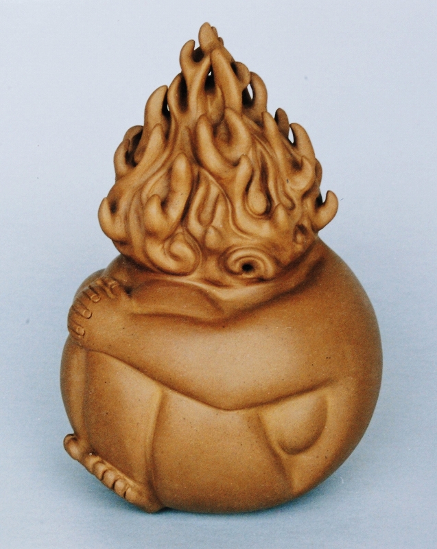 アマミの開祖と伝えられる女神「アマミコ」と男神「シニレク」は、どのように天から降臨したのだろうか。 (作品の中には、写真の女神が入っています。)