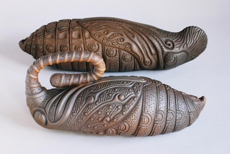 アマミは昆虫たちの楽園でもある。地を這うイモ虫状の環形動物(パイプ状の動物)から、空中を飛ぶ節足動物(体に節がある動物)の出現までに要した4億年ともいわれる進化を、このサナギというタイムカプセルの中で、一気にやってのける。羽化した姿をも感じさせる形は興味深い。