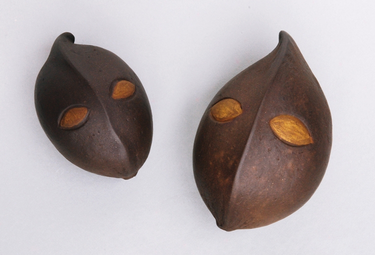 南の森で、板状の根を張り、大木になるサキシマスオウノキの種。目を描いて楽しいおもちゃの出来上がり。