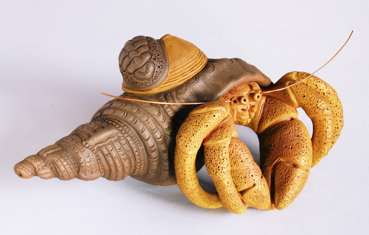ホラ貝にヤドを借りているオニヤドカリ。そのヤドにちゃっかり二匹の居候。ん?どこかでこんなの、見覚えあるなあ。