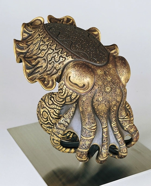 産卵するコブシメのメスと、それを見守るオス。イカの仲間は水に最も適応した生き物のひとつで、体の多くが水分だ。つまりこの姿は「水のカタチ」と言えるかも知れない。