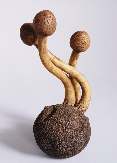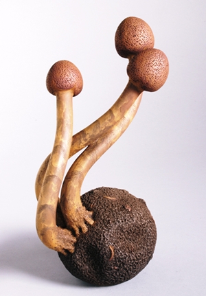 土団子と呼ばれる菌類のコロニーから発生したアマミタンポタケ。アマミは生態系の裾野に生きる菌類の宝庫だ。