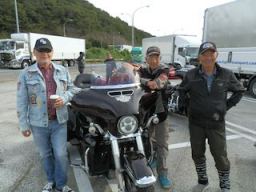 2025年9月28日、西名阪香芝SAに8時集合でした。 朝は快晴、午後は雨なので急いで出発です。 今回は距離があったので少数参加で、37台と車1台です。 故障で仕方なくの参加でした。 |