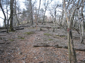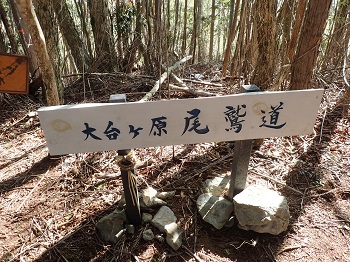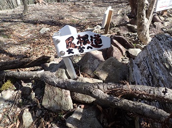 広義の台高縦走に挑戦の為尾鷲辻を出発する。 明るい尾根 誰もいない!! しかしよく踏まれた道が続く。 現在バスでも来れるようになった 大台ケ原 この自動車道路が開通する前は尾鷲からのこの登山道を登って来ていたのだ。 木材も切り出されていたのだ。 木々が若い!! 木材運搬用トロッコも 有ったそうだ。 もしかしたらこの広い道はトロッコの軌道跡かも? 特に難所も無く3時間程でコブシ峰に着いた。 真新しい標識だ。 今日の目標はここまで。 今度は尾鷲側から挑戦だ。 ![]() 尾鷲辻の東屋 もしかしたらトロッコ軌道跡? ![]() かなり大きな山抜け 鹿の食害によるオブジェ 2016年4月30日 7時20分 山幸は尾鷲道の入り口 ”車両通行禁止”ゲートの前に居た。 いよいよ尾鷲道踏破への挑戦が始まる。 2007年5月 尾鷲辻からコブシ峰を 踏破して直ぐに 続きのこのコースを踏破したかったのだがネット検索しても情報がほとんど出てこない。 なので 決行の決断が出来ずにいたのだが近年に成り”尾鷲道開通100周年記念トレッキング”が催される等してトレールの整備など行われているようだ。 歩き始めて間もなく極々小さいが地蔵峠の標識が!! 地蔵尊に挨拶して踏破に向かう。 尾根道は快適だ。 過っては繁茂していたであろうクマ笹の名残があちこちに見られる。 古びた標識と最近建てられたと思われる真新しいものが有り快適に歩ける。 ”神明水”の標識はあるが枯れている。 10時40分 遂に”マブシ峰”到着した。 9年前真新しかった標識も風雨に晒されかなり傷んでいる。 遂に永年思い続けていた台高全縦走を果たした。 ![]() 峠の地蔵尊 真新しい標識 ![]() 前回真新しかったが9年経つと! 熊野灘が良く見える 雑誌”山と渓谷”に載っていた記事で台高山脈の”明神平”を知りその奥深さに魅了され縦走がしたくテントを購入し漸くその目標を達成することが出来た。 今回のこのコース 歩いた記事が少なく情報不足でなかなか実行できなかったがたまたま開通100周年記念行事が有り ボランティアの皆さんの努力も有りコースの 細かな整備も行われた。 地蔵峠から降りてくると一人の青年と出会った。 ”夢ヤーヤ”さんで尾鷲道整備ボランテイアにも参加しているとの事。 尾鷲道整備にお礼を言い 台高全縦走が果たせた事等や お互いのホームページの話などを交わした。 山幸の山行の原点明神平を知ってから26年の歳月をかけて完走した”台高全縦走” 次なる目標に向け気力 体力の維持に努力し楽しみながら続けられる様にしよう!! ![]() 地蔵峠の地蔵尊の案内 ボランティアの皆さんによって建てられた標識 ![]() ページトップへ トップページへ |