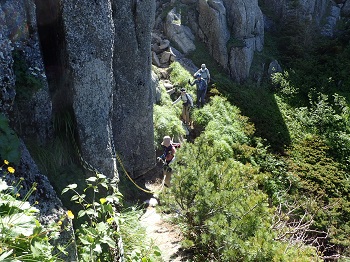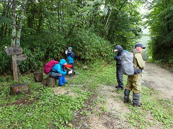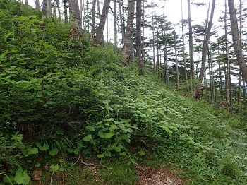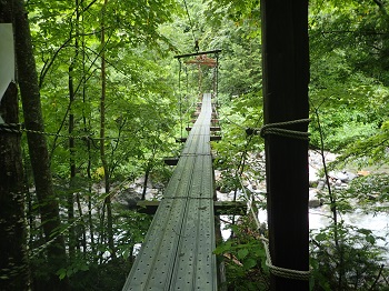 その時から気持ちの何処かに在るものの行きそびれていた山だ。 その気で調べてみると駐車場もあり周回することが出来る。 そのコース上には三百名山在り 二百名山在り おまけに百名山も在ると言う 魅力的なコースだ。 越百山もいいが南駒ヶ岳は堂々としているし仙涯嶺は岩場で面白そうだ。 実は去年このコース予定し山小屋の宿泊予約もしていたが台風の襲来で行くことが出来なかった。 そして今回 トリプル台風の合間を縫って行ってきた。 1日目 今回はミズナラ号だ。 それぞれにピックアップして貰い出発。 休憩を挟み 運転を交代しながら伊奈川ダムPに到着。 すでにアルプスの匂いが漂っている。 はやる気持ちを押さえながら 身支度を整え 準備していた入山届を無事下山を祈りながらポストへ入れる。 車両通行止めの頑丈なゲートをすり抜け歩き出す。 中央アルプス南部 ゆったりとし植物が多く南アルプスのような雰囲気だ。 メインルートからは外れたこのコース 昔は山男しか歩かなかったのだろう。 それらしい標識も残っている。 ミズナラさん 少々バテ気味なので花を楽しみながら登る。 小屋に着いた。 お決まりの”カンパ〜イ” これが楽しい!! ![]() 駐車場の登山届ポスト 昔の雰囲気の道標 ![]() 斜面を覆い尽くす”カニコウモリ” お決まりの”カンパ〜イ” 朝目が覚めると絶好の好天 朝食後オーナーのサービスで豆を挽いてコーヒーを入れて貰った。 朝から至福の時が流れる。 越百山に着いた。 一気に東側の視界が開ける。 まず 目にするのはなんと言っても富士山 そして 去年このメンバーで行った甲斐駒ヶ岳を探す。 お〜あれだ。 摩利支天も確認できる!! そして視線を右に移していけばちょうど富士山の麓が大きく高度を下げる。 ”高山裏避難小屋の位置や” それからかなり右にどっしりとした聖岳 が見て取れる。 こうして見ると相当な距離だ。 何回にも分けての縦走ではあったが甲斐駒ヶ岳から聖岳まで歩けた事は嬉しい限りだ。 仙涯嶺は可なりの岩場だ。 しかしルート上にはもろい所は無くロープもクサリもあり歩き難い 危険な部分は少なかった。 南駒ヶ岳に着いた。 暑い 天気が良すぎて暑い。 尾根筋は地を這う這松ばかりで日陰になるようなものは無い。 積極的に欲しくはないがシャリバテしない様に 昼食とする。 何時もは小屋弁当のおにぎりを2個完食するのだけど今日は一口目から”うっ”となる感じがした。 みんなが同じような事を言っている。1個を どうにか流し込んだが 2個目には手が出なかった。 だがこれでは少なすぎるので 後は非常食に手を付ける。 越百山と同様に眺望のいい頂上だ。 摺鉢窪避難小屋が見えている。 高山植物が豊富な所だから寄ってみたら と小屋のオーナーが進めてくれたが途中の眺望に足を取られ あまり余裕時間が無くなって来ているのと 暑さによる疲れとで立ち寄らない事に決定。 しかし 小屋分岐に来ると手の届きそうなところに雪が残っているのであそこまで行ってクールダウンすることに。 え!! 何故?? こんなに暑いのに溶けて流れているのはほんの少しだけ!! 雪を掘り出し頭を首筋を冷やす。 周囲で溶けたであろう部分は固い氷だ。 石で 砕いて手ぬぐいで包み持ち歩きながら頭や首を冷やす。 空木岳山頂まで小さくなりながらも凍っていた。 空木岳迄来るとさすがに他の登山者の姿を見る。 木曽駒ヶ岳はガスの中だけど千畳敷カールと宝剣岳は目の前だ。 北の眺望が開けるはずが木曽駒ヶ岳から北は残念ながらガスの中 ここから木曽殿山荘までが遠かった。 ステップを打った岩場 クサリ ロープ ザレバ 何度も繰り返し最後は急降下のジグザグ路 嫌気がさしたころ小屋着。 ![]() 越百山から歩いた尾根 仙涯嶺の岩場 ![]() 南駒ヶ岳山頂 右後方は御嶽山 怪しげなうろこ雲 雨は近い!! 天気予報では 午後から雨になっていたが夜中にトイレに起きたらすでに降っていた。 今日は樹林帯の中の下山だ。 大降りではないので良しとしよう。 吊橋まで来た。 何とも簡素な造りだ。 大雨になるとよく流されるそうだ。 さてこれから30分程度今日のコース唯一の登りだ。 雨は降っているような 降っていないような状況だが周囲がぬれているので雨具は脱げない。 うさぎ平に着いた。 2時間の林道歩きに備え水分とエネルギーの補給をする。 林道歩きの間は降ったりやんだり薄日のさす時もあったりで ”車に着いたらラーメンでもできるね” なんて話しながら歩いていたが車に着いた時は かなりの本降り。 車に乗り込むのも一苦労。 ![]() 吊橋 下の水場”仙人の泉” ![]() うさぎ平に到着 ようやく駐車場到着 中央アルプスのメインルートを南に外れた越百山 仙涯嶺 南駒ヶ岳何れも良い山だった。 メインルートで無いだけの静かな山歩き しかし小屋のオーナーさんの努力だろう ペイントマーキングはしっかり有り ルートの刈り払いも 確りされていた。 今回新たにデジカメを持っていった。 OLYMPUSのTG=4 Tough 防水仕様だ。 雨を気にしなくても良い