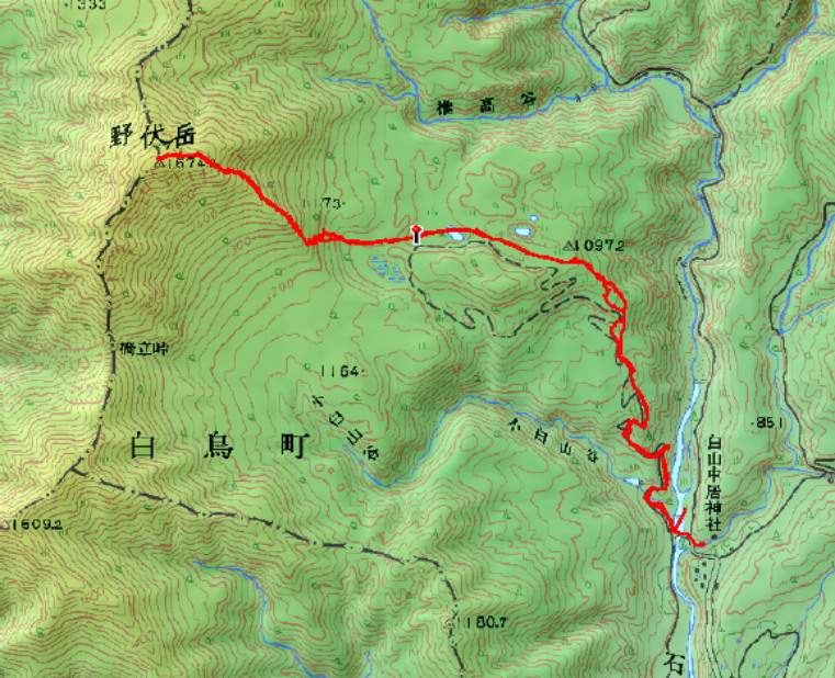 | コースタイム | 登山口6:15→8:10牧場跡→10:30野伏ヶ岳10:45→13:15下山 |